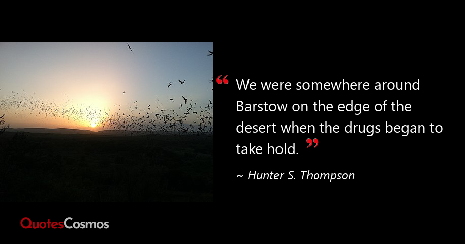 Im not a hunter but. We were somewhere around Barstow on the edge of the desert when the drugs began to take hold Hunter S. Thompson - The Edge.